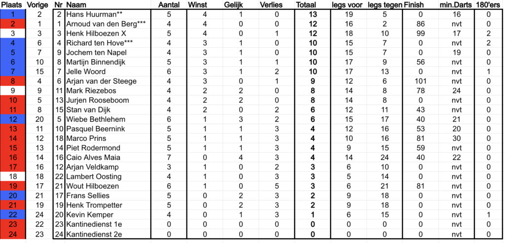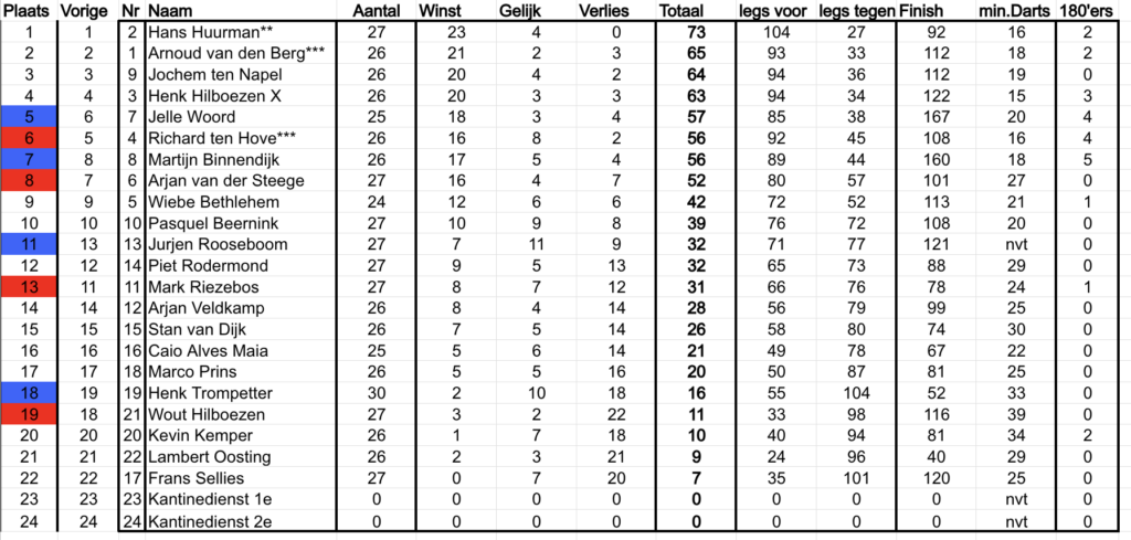 Stand voorjaarscompetitie